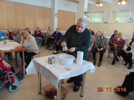 W naszym Domu kultywujemy rozmaite tradycje. Wigilia dnia świętego Andrzeja to ostatni moment na zabawę przed adwentem. Mieszkańcy ten dzień spędzili na wróżbach. Było lanie wosku i odczytywanie wróżby z cienia. Niektórzy chętnie wspominali tradycje andrzejkowe z rodzinnych domów. Bawiliśmy się wyśmienicie, a interpretacje wróżb były bardzo zaskakujące.